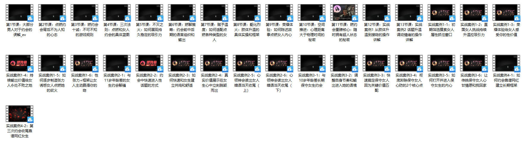 在这套课程里面,我会为你讲述成功点燃约会的流程方法和技巧。并向你们展示剖析我的约会实战案例,让你从浅入深的彻底学会如何点燃和不同女人的约会。所谓燃约会,就是让女人真正的喜欢上你并且有结果的约会,和女人约了好几次都没有结果,这是普通的约会。而大部分男人在座的都是普通的约会。本产品的宗旨是教你燃约会,他不限于约会的次数地点以及类型。只要你能掌握本课程所讲燃约会的要点,你也可以让自己每一次的约会都有结果。当然在燃计划里,我也会亲自手把手带你上路指导,分析你的个人具体案例和进度。我在计划里会亲自为你提供练习的方式话题库,约会时可以使用,帮助进入到男女框架。